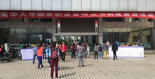 为大力推行国家职业资格证书制度,加快技能人才队伍建设,更好地服务我校学生就业和经济社会发展,贯彻执行湖南省人力资源和社会保障厅职业技能鉴定中心下发的《关于开展2015年国家职业资格证书制度宣讲活动的通知》(湘人社鉴函〔2015〕5号)文件,2015年10月11日上午继续教育学院在中国电竞官方网第1教学楼前坪举办了国家职业资格证书制度宣讲活动。活动通过在校园布置宣传横幅、摆放展架、发放相关宣传资料、现场问卷调查方式进行,让学生更多的了解了国家职业资格制度。